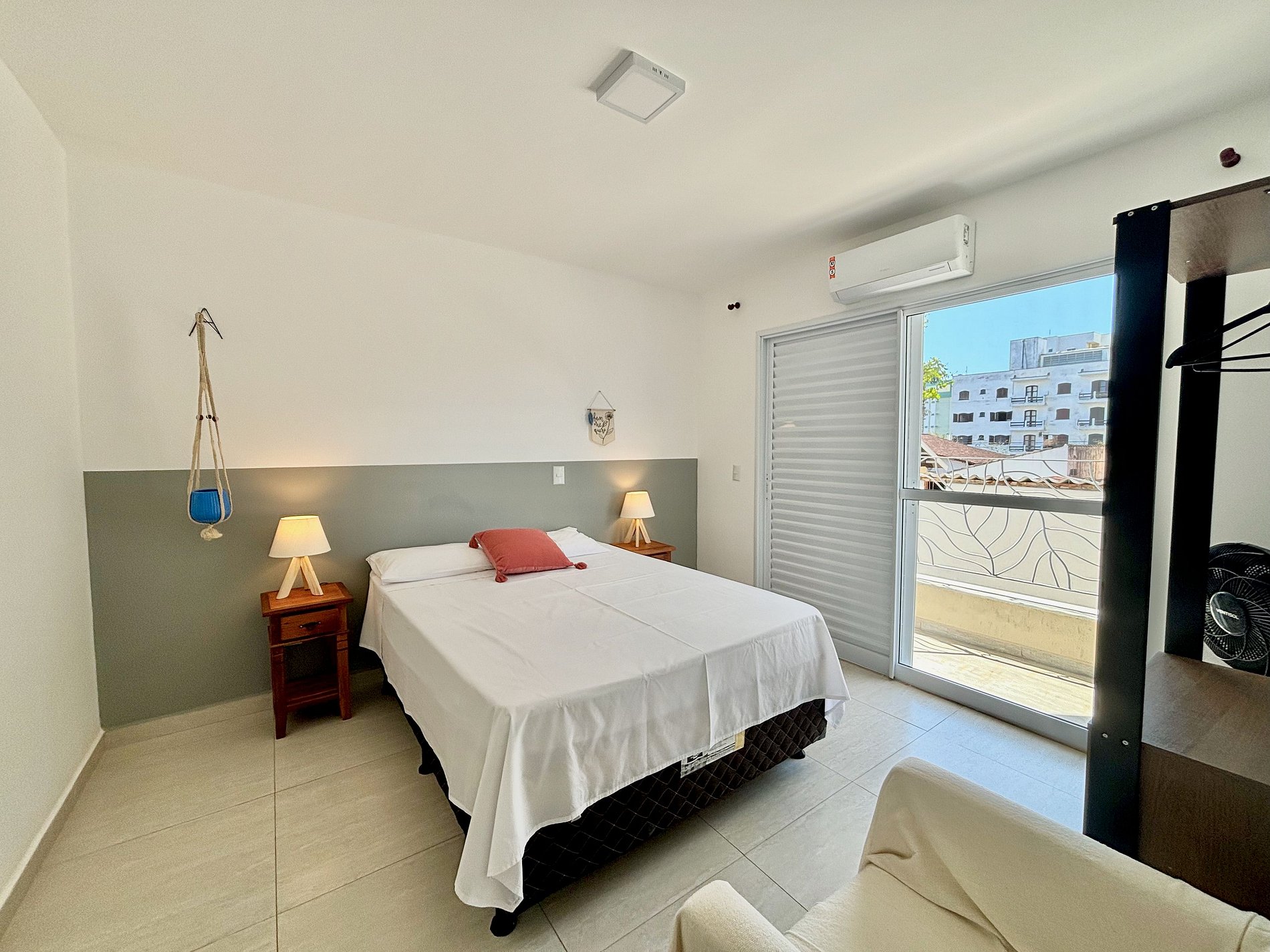 O apartamento é ideal para ficar com a sua família. São 3 quartos, sendo uma suíte com cama de casal, um quarto com cama de casal, e um quarto com 2 camas de solteiro, todos com sacada. Disponibilizamos 2 colchões adicionais.