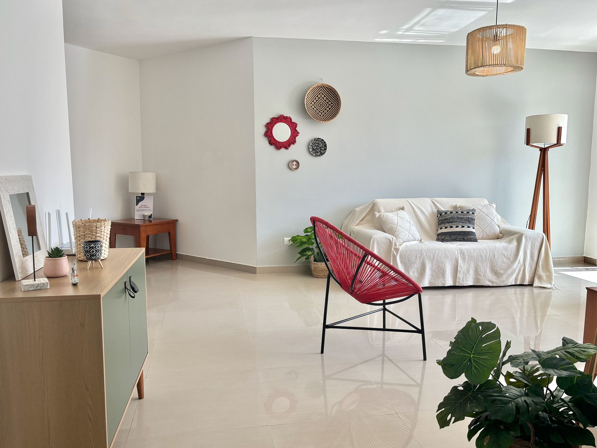 Área de estar com sofá/cadeira
