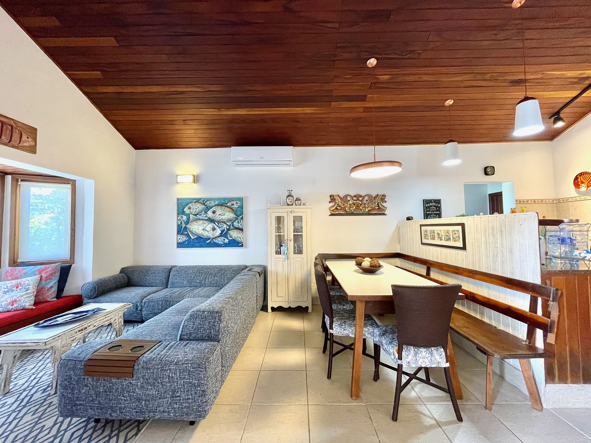 Localizada a poucos metros da praia, confortável casa de família muito aconchegante com 5 suítes, reformada e decorada com muito bom gosto para se sentir em casa.