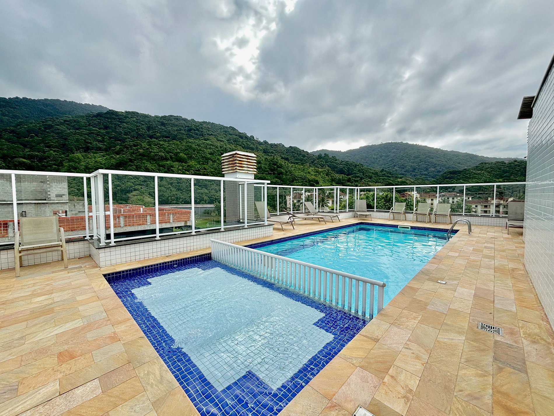 Condomínio novo com área de lazer na cobertura com piscina, churrasqueiras, mesas, solariam.