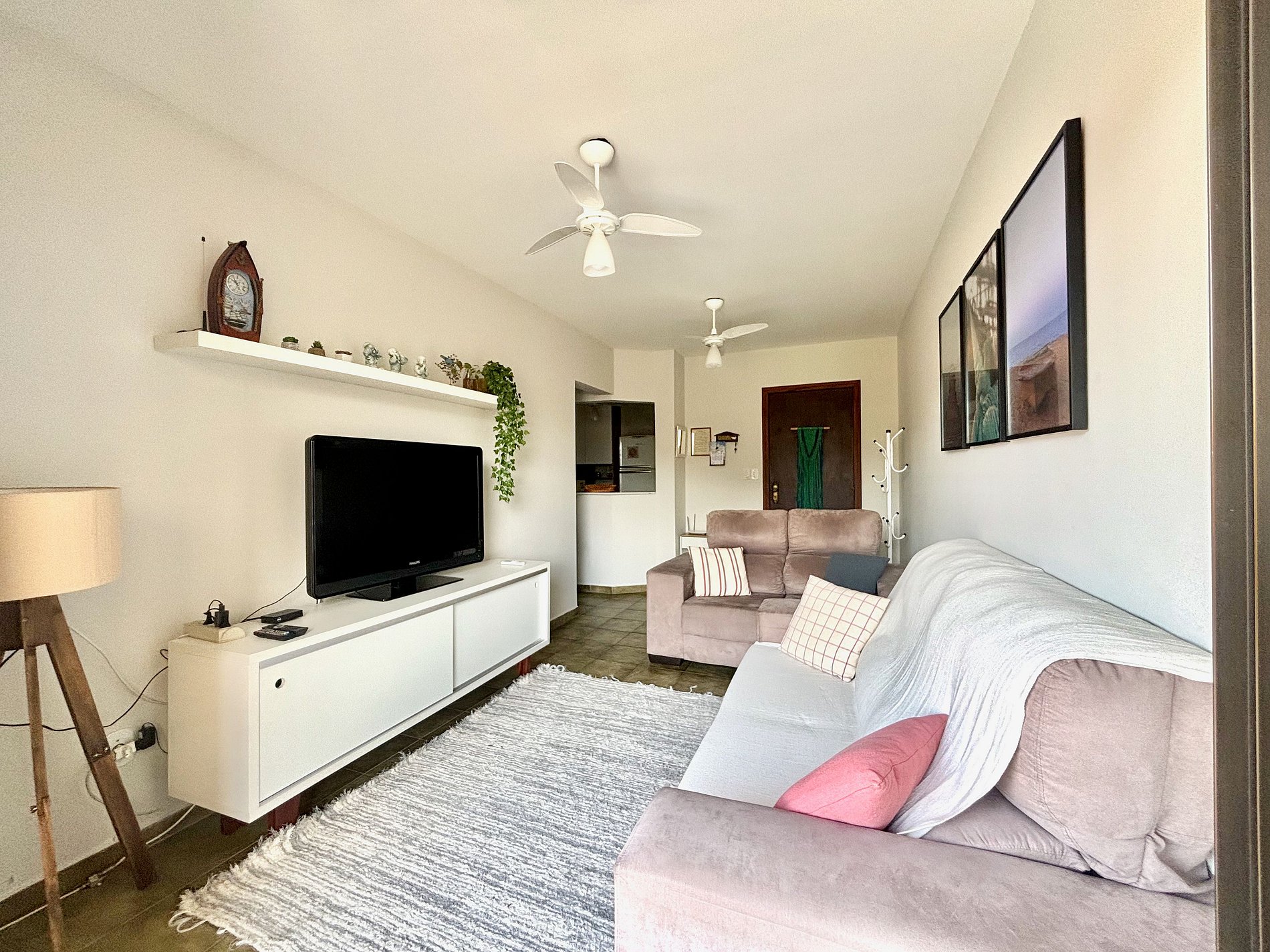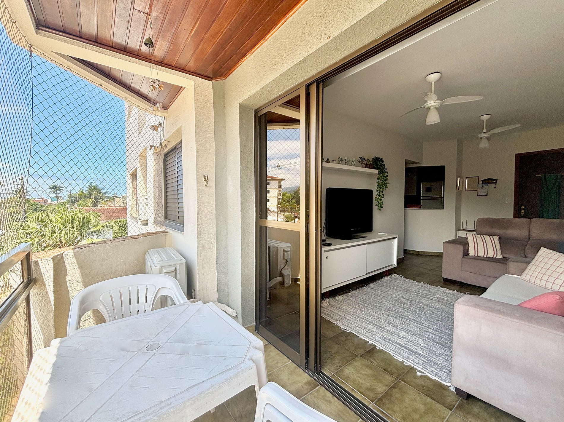 Sala de TV com varanda + ar condicionado + ventilador de teto
