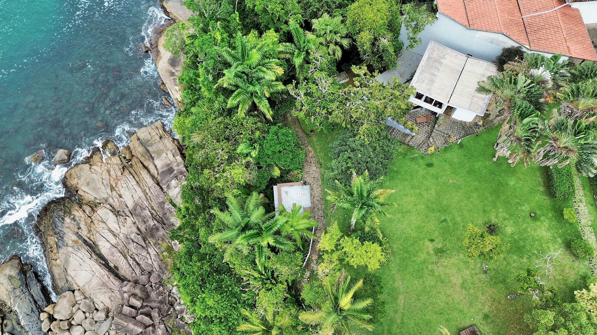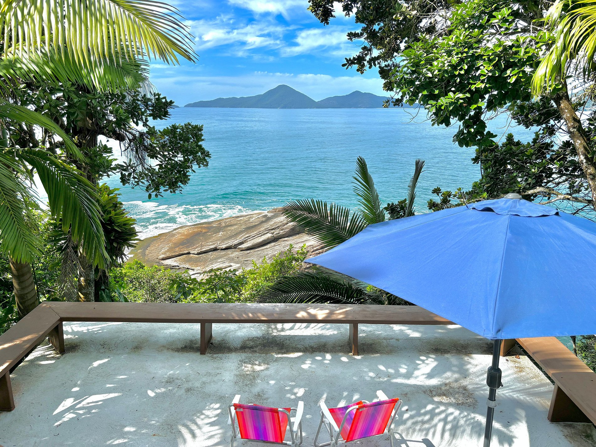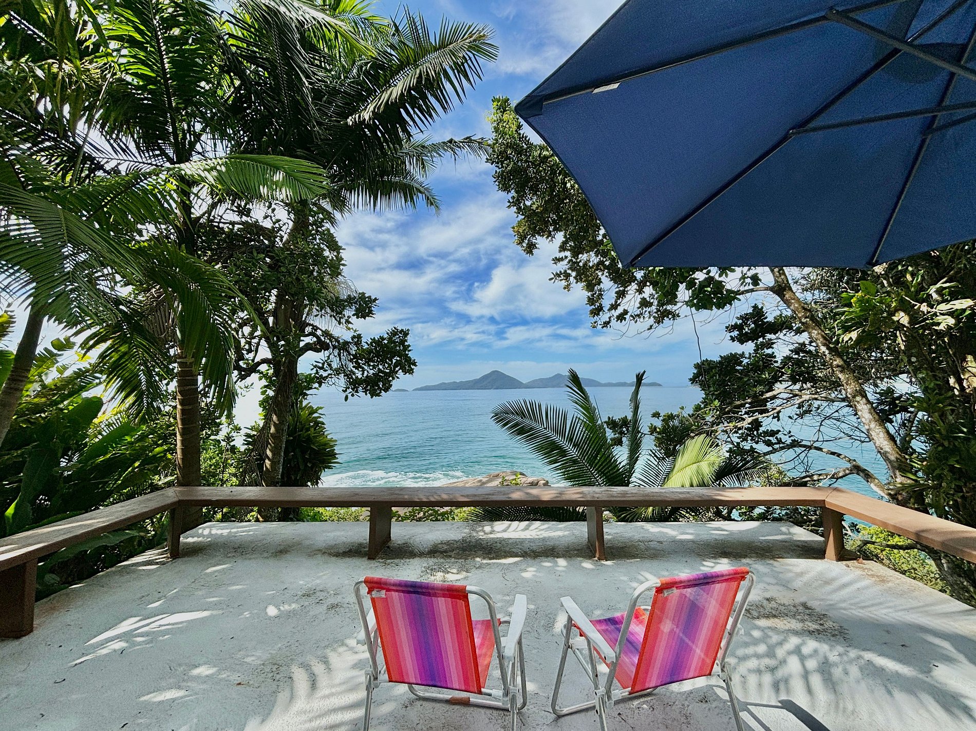 Descendo um pouco, linda área para contemplar a vista deslumbrante para o mar onde se abre um cenário de tranquilidade e beleza natural.