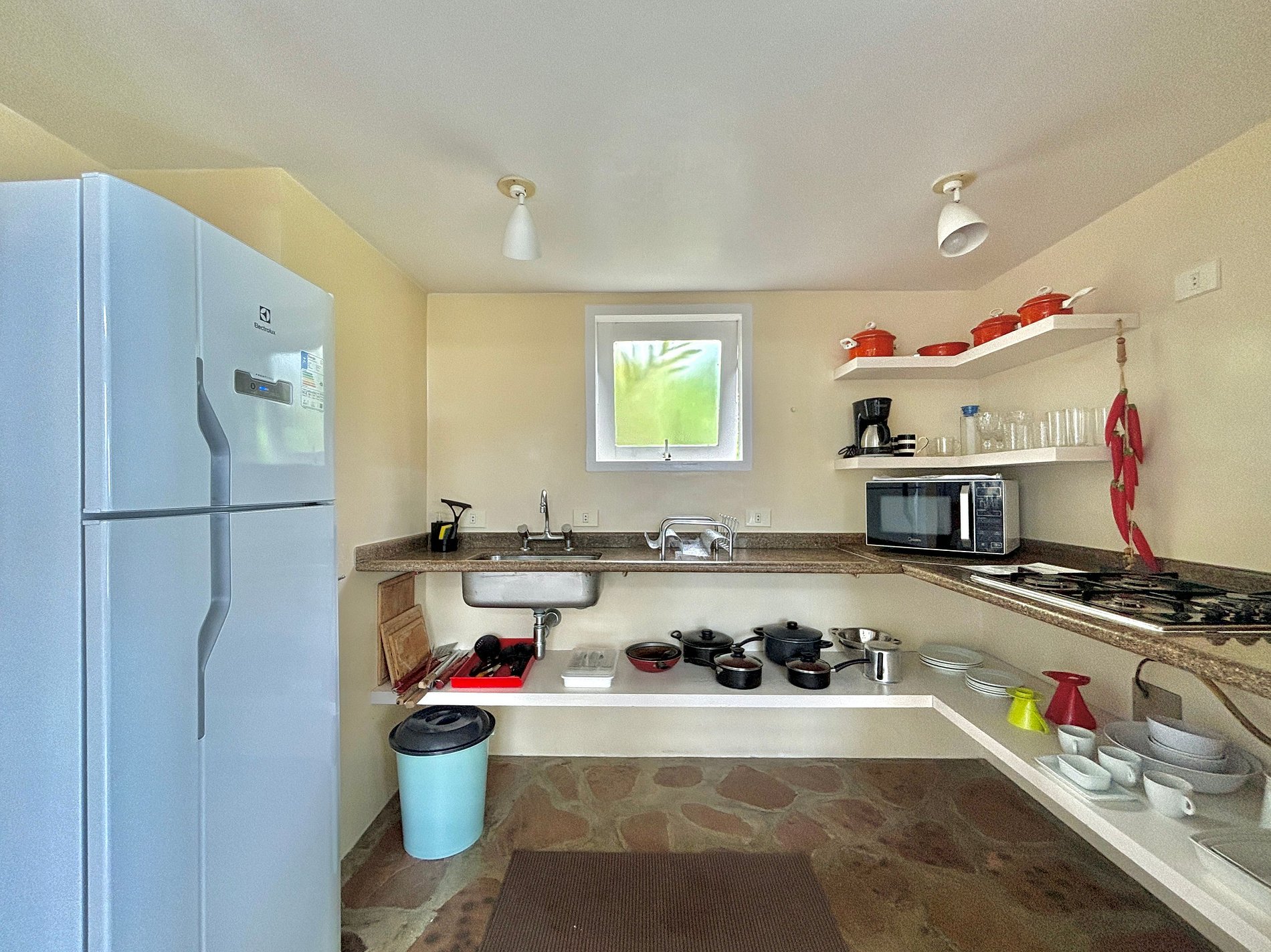 Chalê equipado com confortável cama de Queen, cozinha prática e banheiro, perfeita para um refúgio intimista c/ vista para o mar.