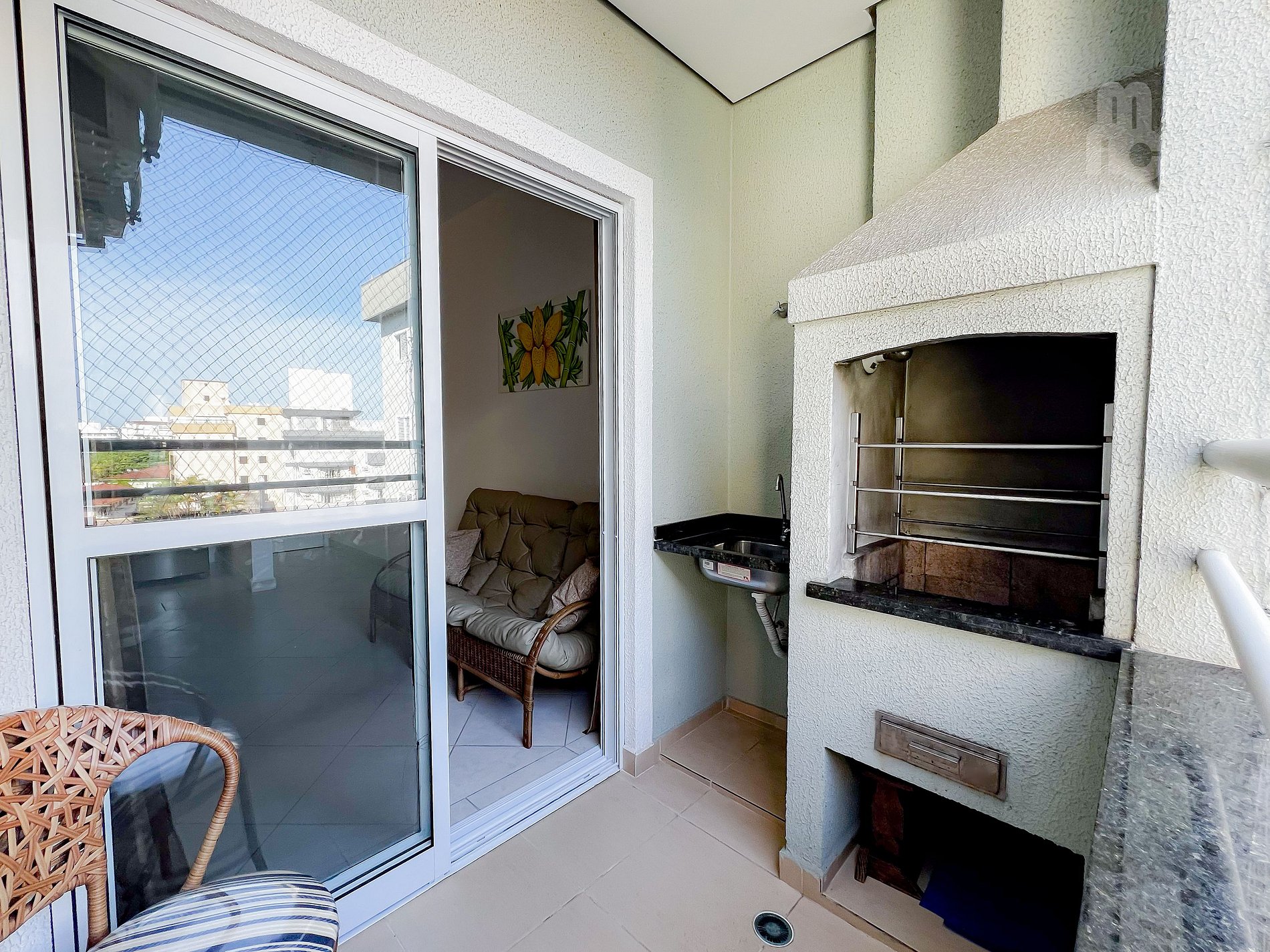 Varanda com churrasqueira.