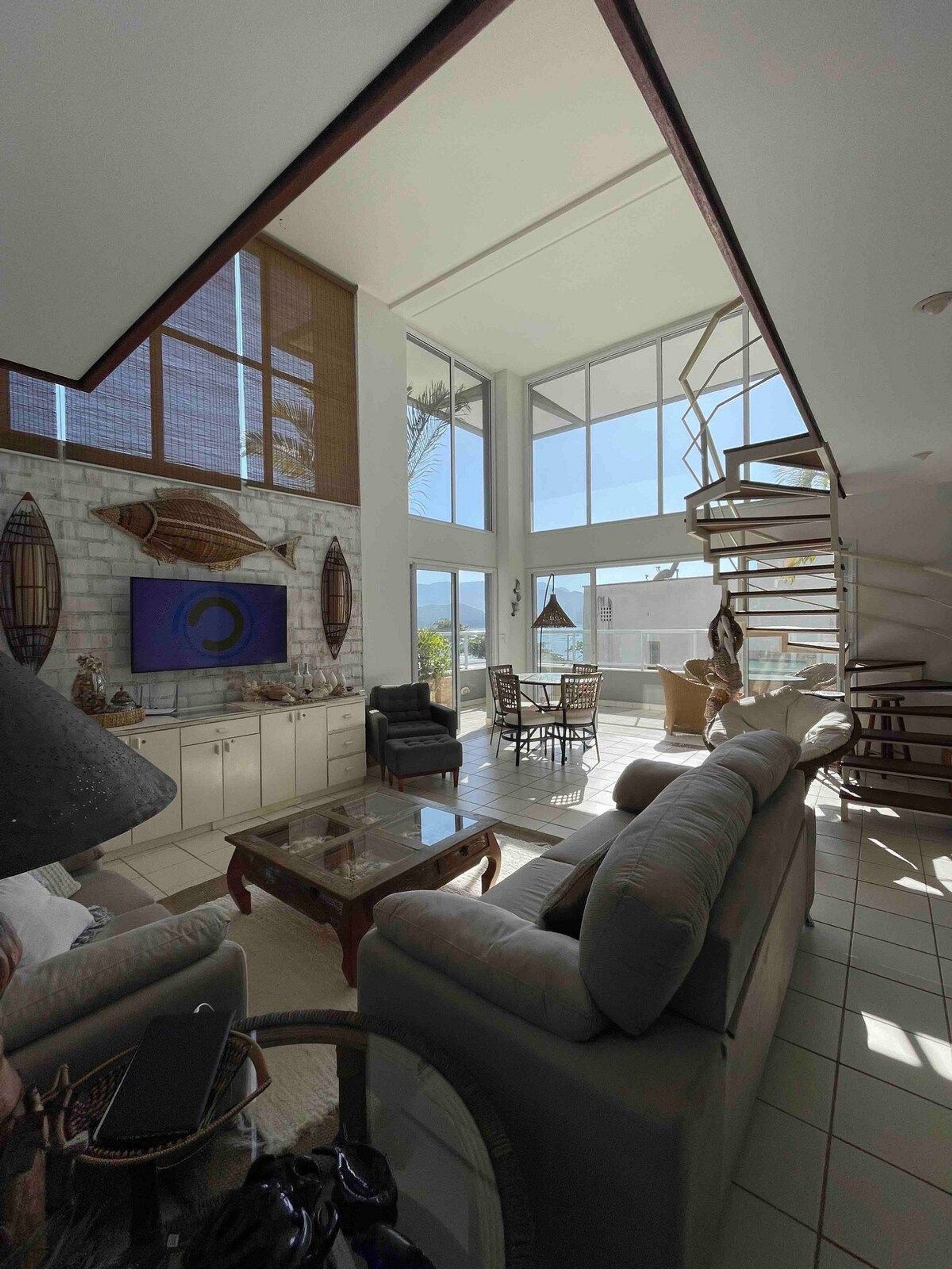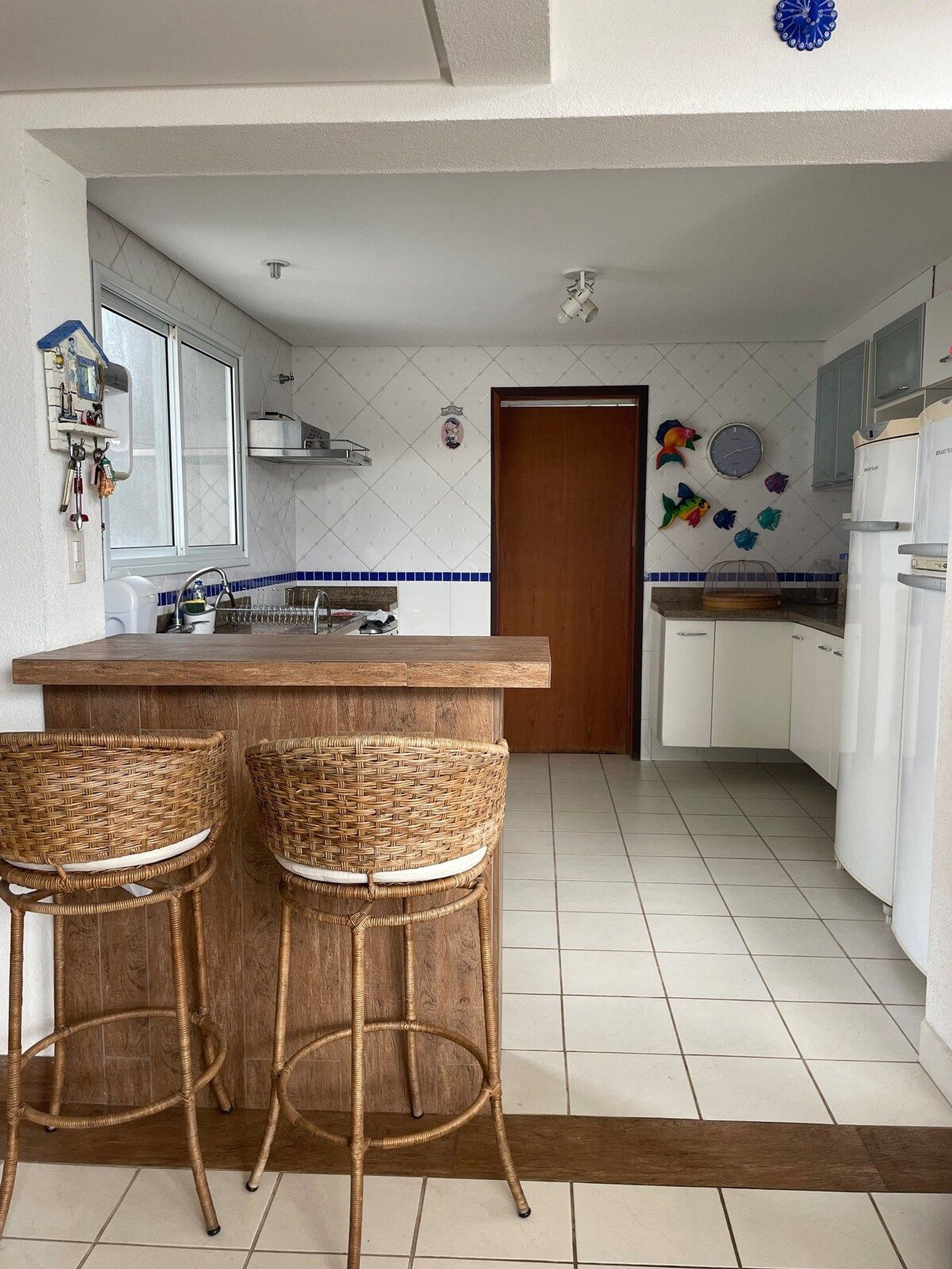 - Ampla sala de jantar, cozinha completa, sala de Tv com pé direito duplo e grandes aberturas, varanda com vista pro mar.