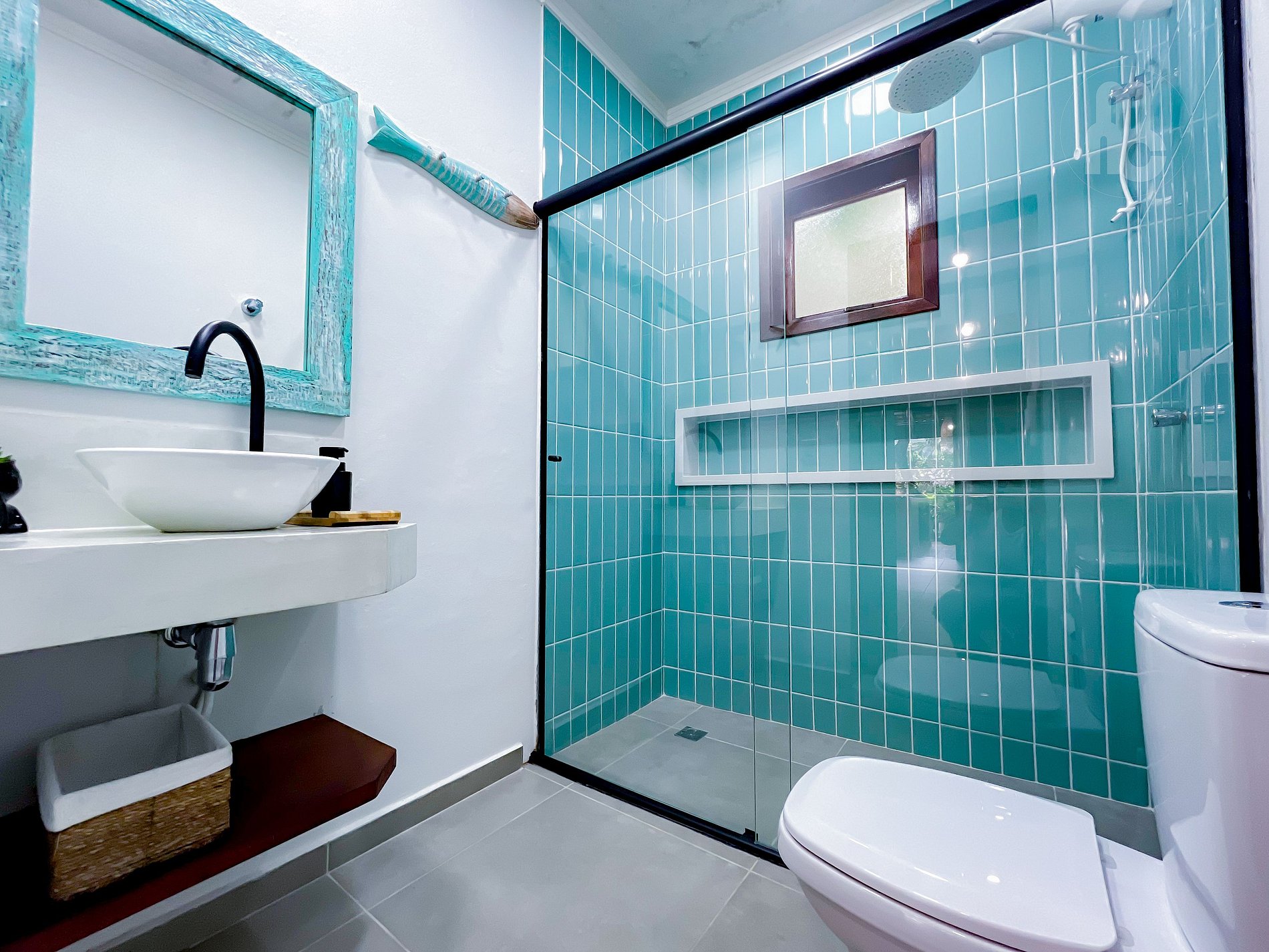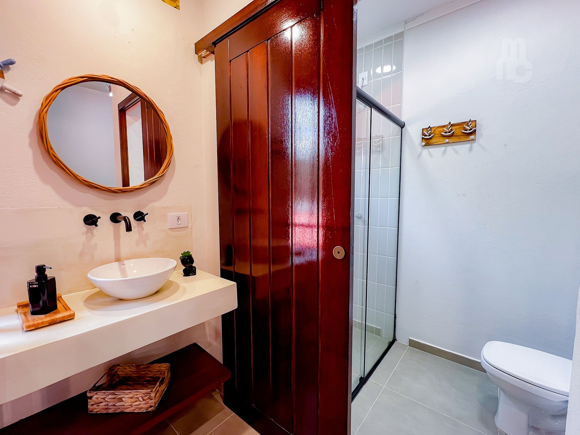 - Sala de TV ampla com 1 banheiro social e pia de apoio;