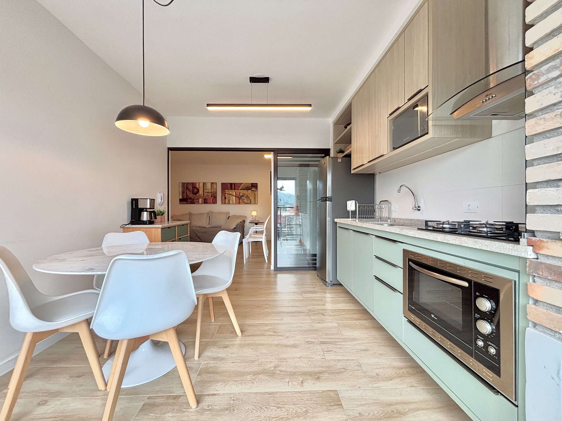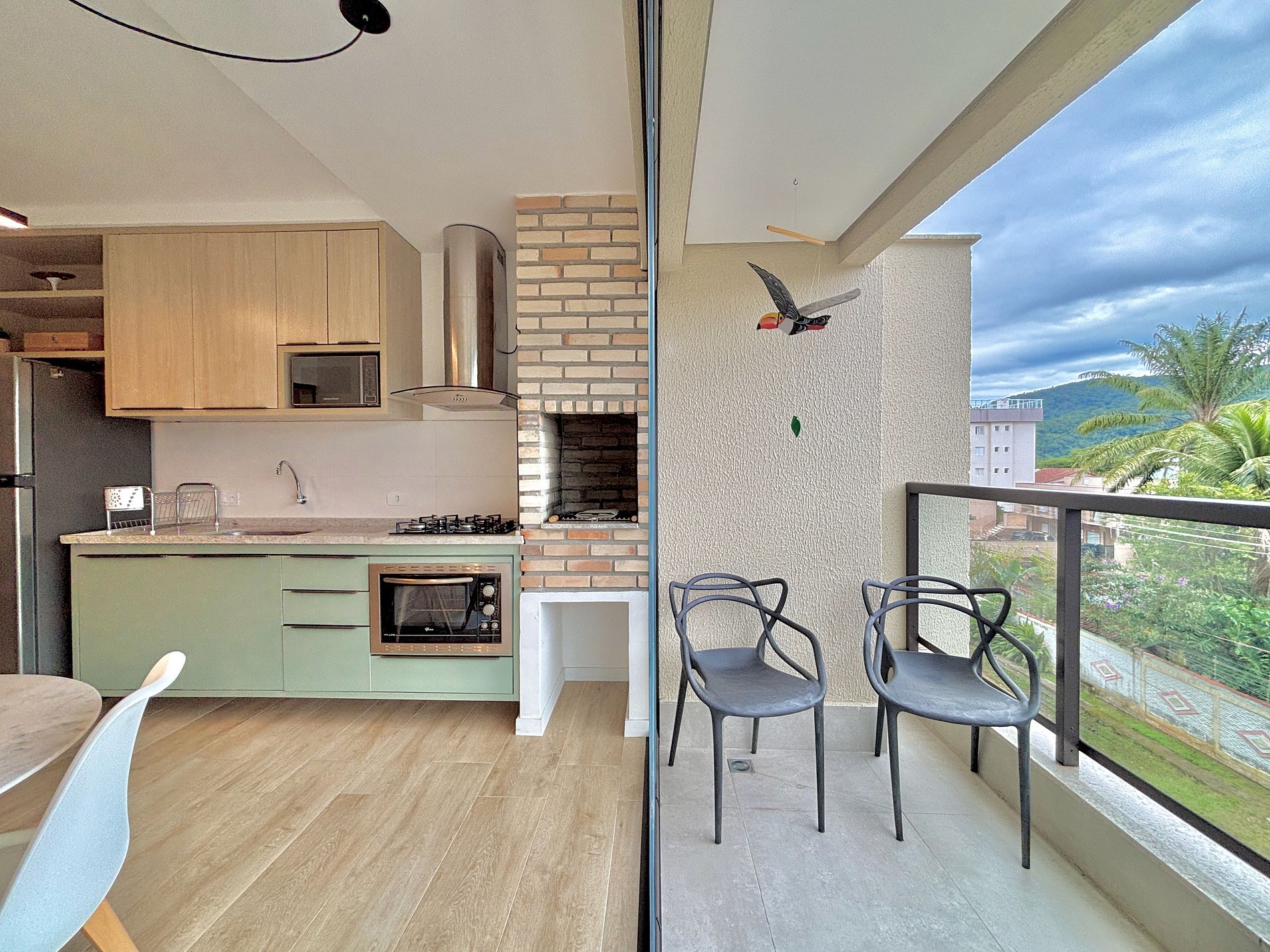 Amplo espaço de convivência, integrando sala de TV, sala de jantar, cozinha super completa e área gourmet com churrasqueira, para aproveitar em família ou com amigos.