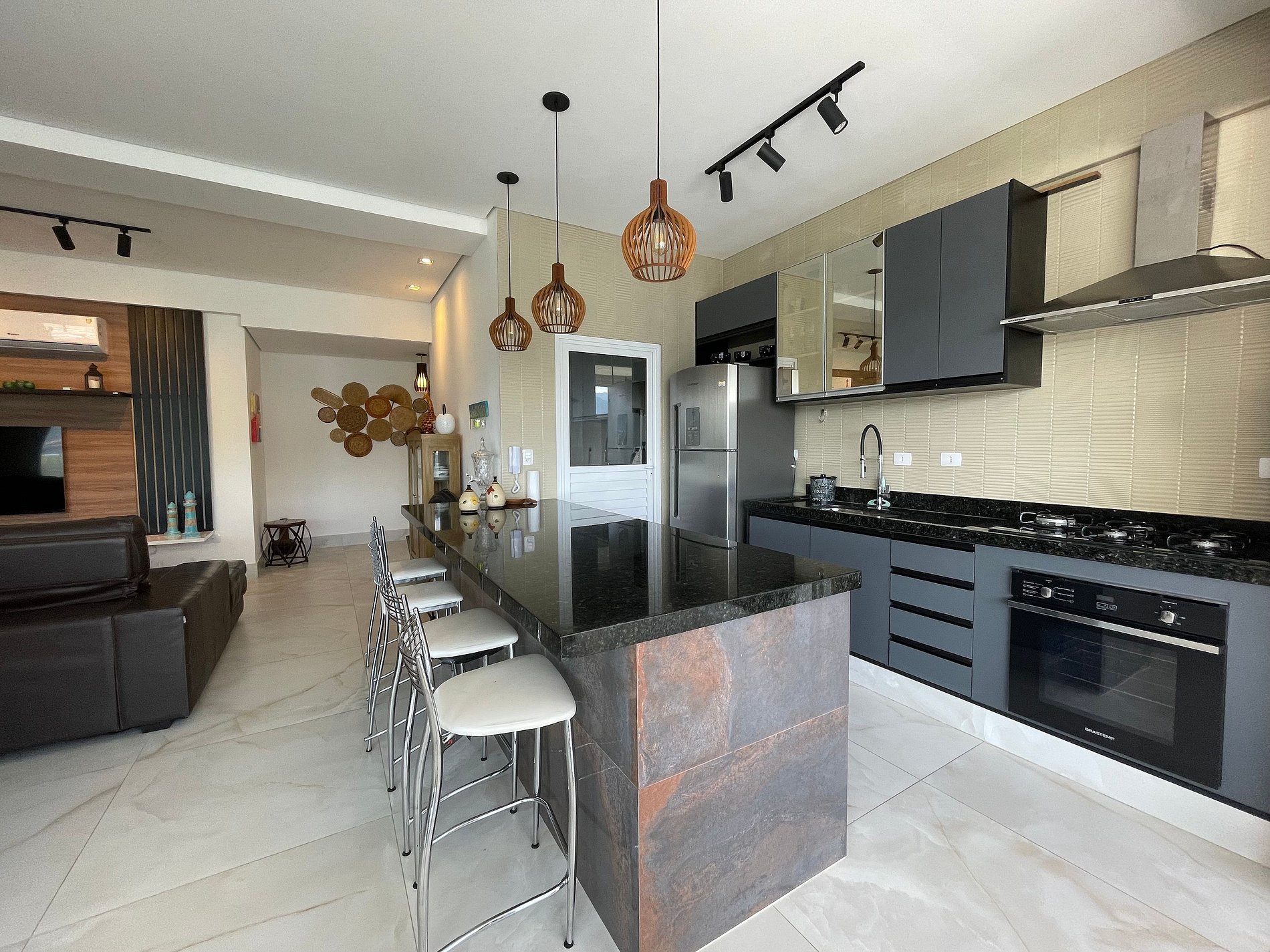 Ampla espaço de convivência, integrando sala de TV, sala de jantar, cozinha super completa e área gourmet, para aproveitar em família ou com amigos.
