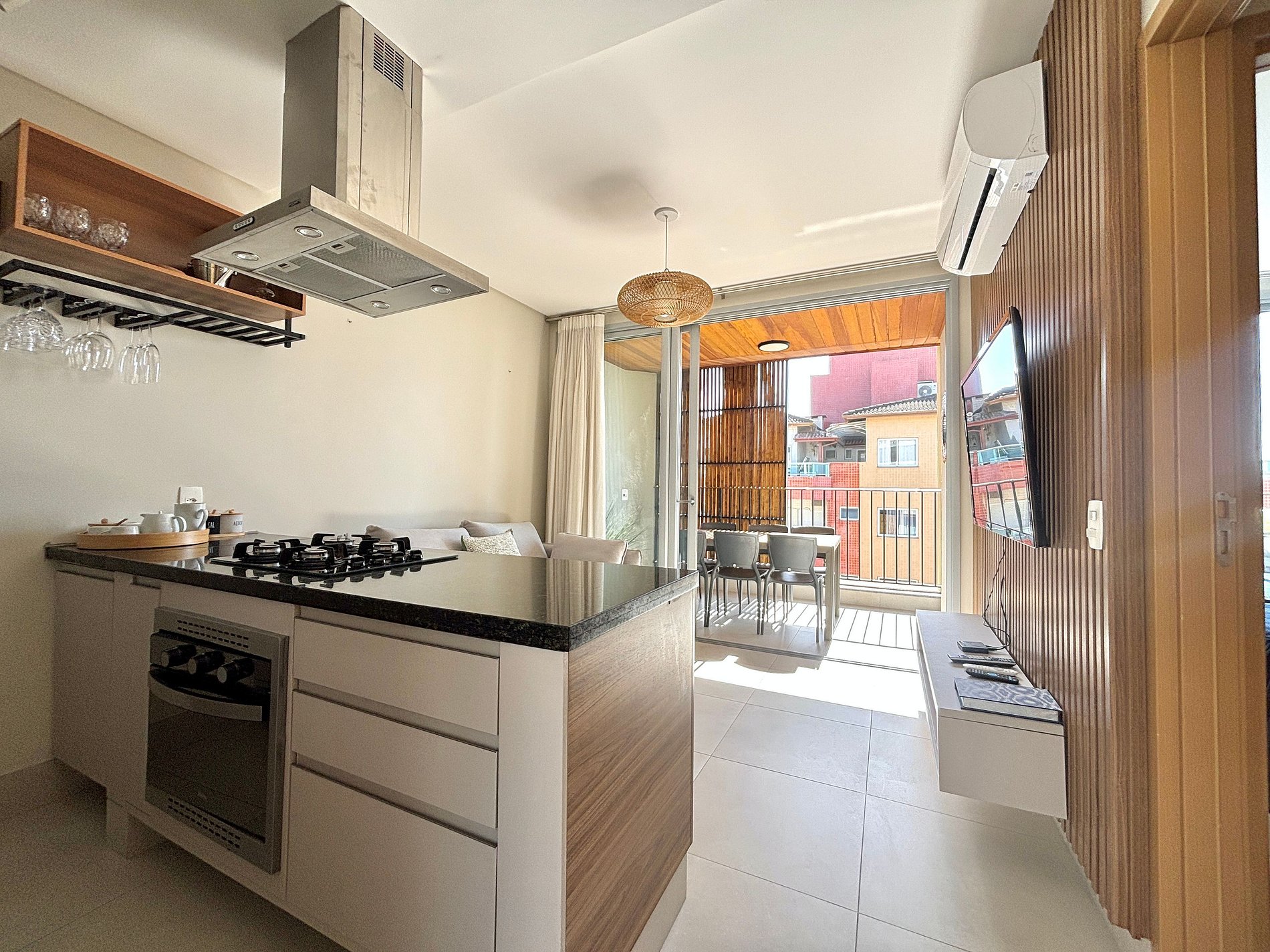 - uma suíte com cama queen c/ AC e TV, acesso a varanda e vista para o mar