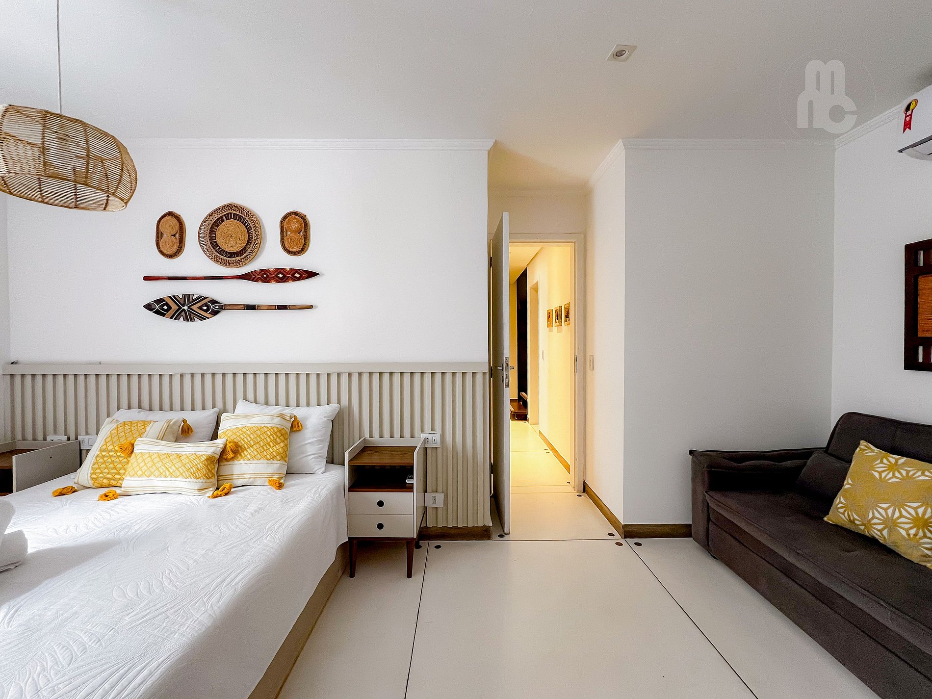 - 1 suíte com cama queen + sofá + colchão extra de solteiro + ar condicionado;