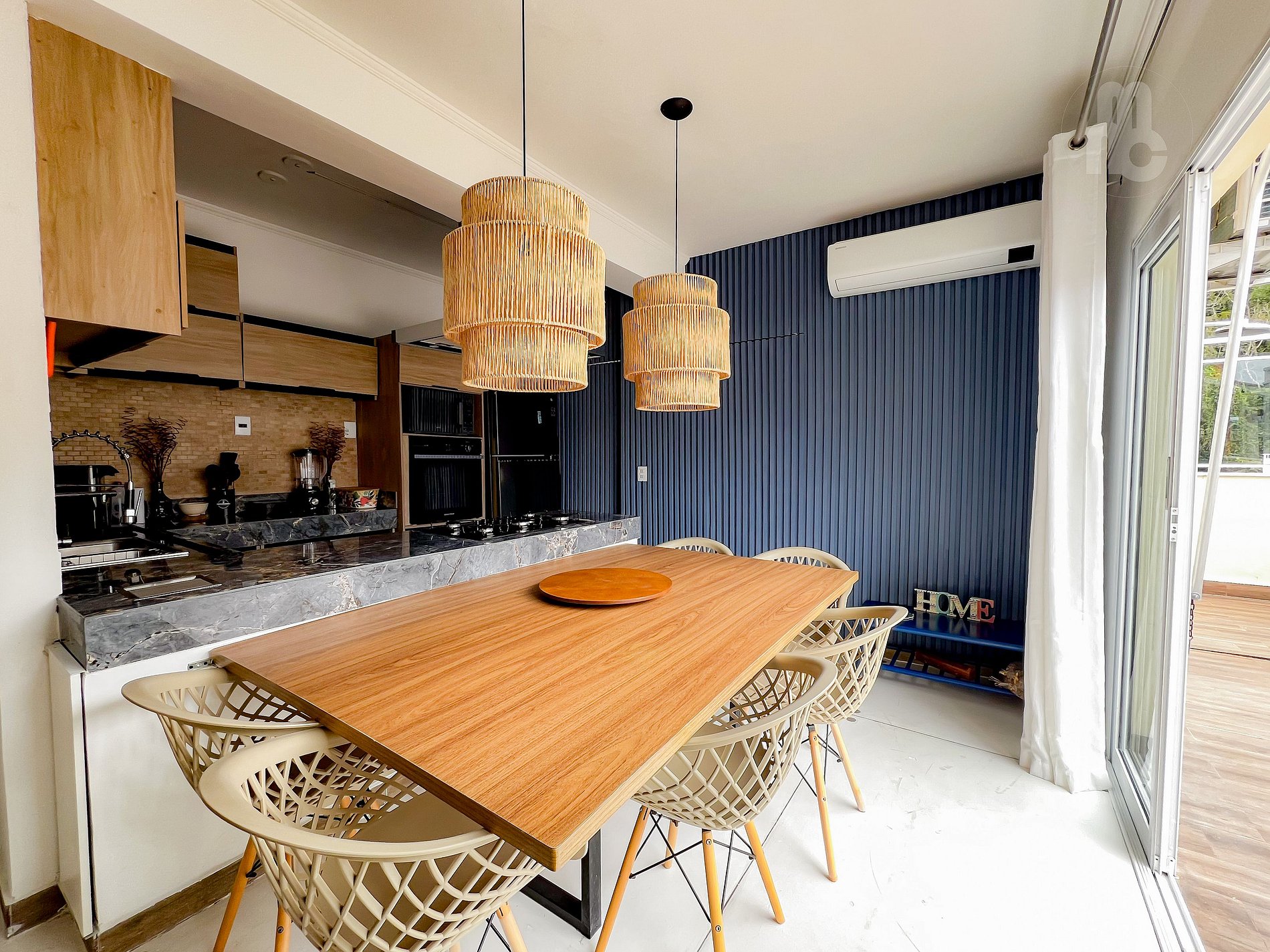 A área social é ampla e integrada, com sala de estar/tv, sala de jantar e uma cozinha moderna, conectadas de maneira harmonica. Tudo em um conceito aberto que se liga diretamente à varanda com área gourmet com churrasqueira e jacuzzi. O lugar perfeito para confraternizar e criar memórias inesquecíveis no paraíso de Ubatuba.