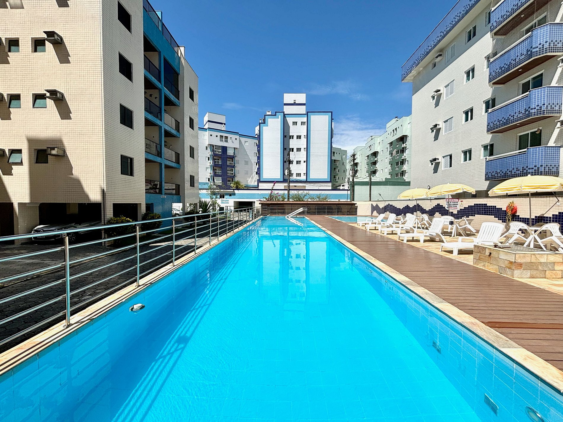 Condomínio familiar com piscinas, área de churrasco, salão de festa.
